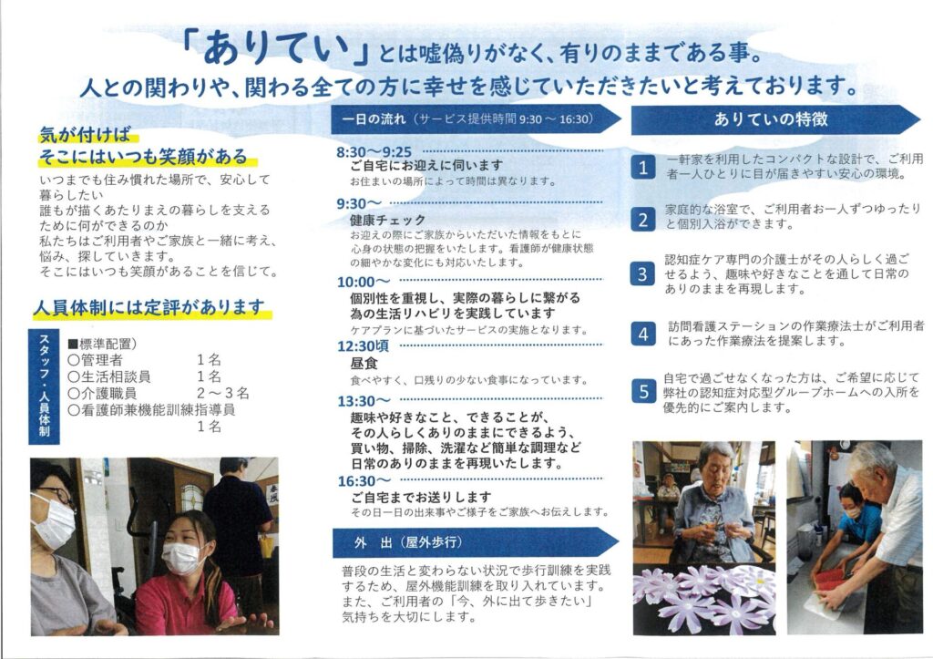 このたび、12月1日より【地域密着型デイサービスありてい】から【認知症対応型デイサービスありてい】へ