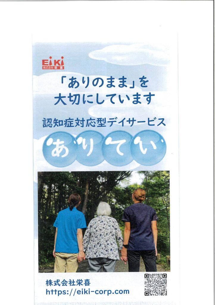平素より当事業所の運営にご理解とご協力を賜り誠にありがとうございます。 このたび、12月1日より【地域密着型デイサービスありてい】から【認知症対応型デイサービスありてい】へ 事業形態を変更する運びとなりましたことをお知ら …